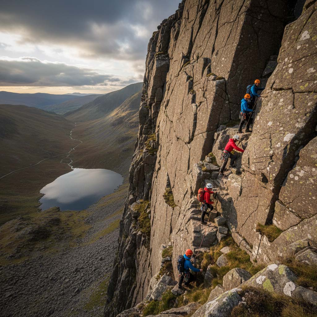 Gimmer Crag is one of the Lake District’s best-known climbing and scrambling venues, perched high above Langdale with breathtaking views over Stickle Tarn and the valley below. The approach is a beautiful mountain walk in its own right, and reaching the base of the crag offers one of the most rewarding viewpoints in the central fells.